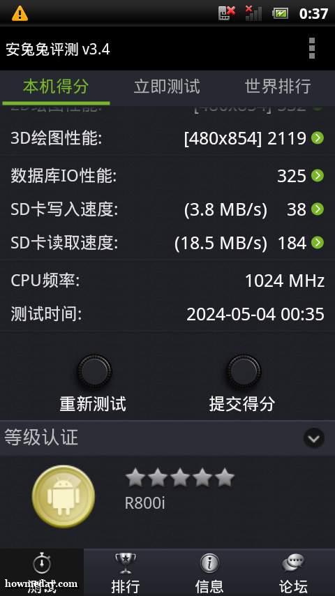 [Sony Ericsson(R800i)] Antutu Review v3.4 Score(4735) [Graphics Performance][IO Performance][SD Card Speed] [Original text ]