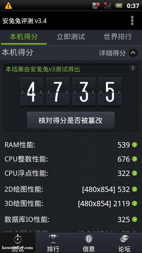 [Sony Ericsson(R800i)] Antutu v3.4 Score(4735) [RAM Performance][CPU Performance][Graphics Performance][IO Performance] - [Sony Ericsson (R800i)] comprehensive performance evaluation of gaming phones.